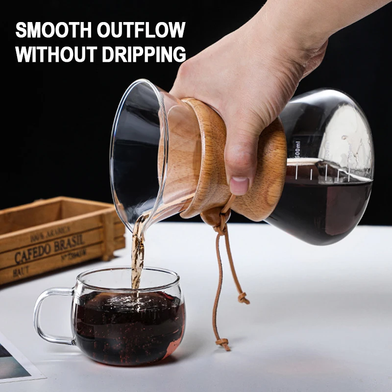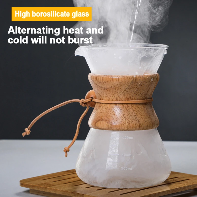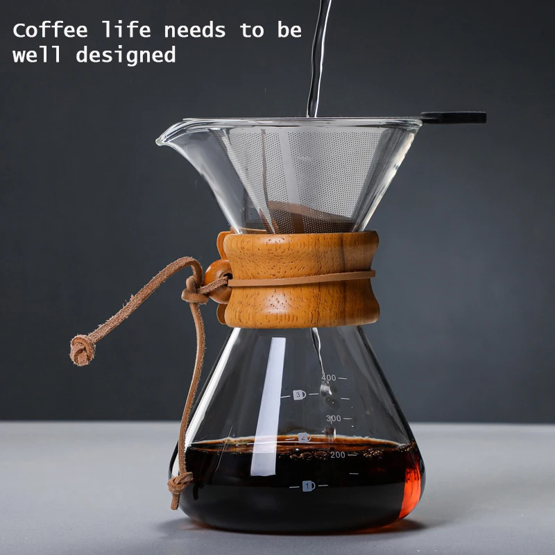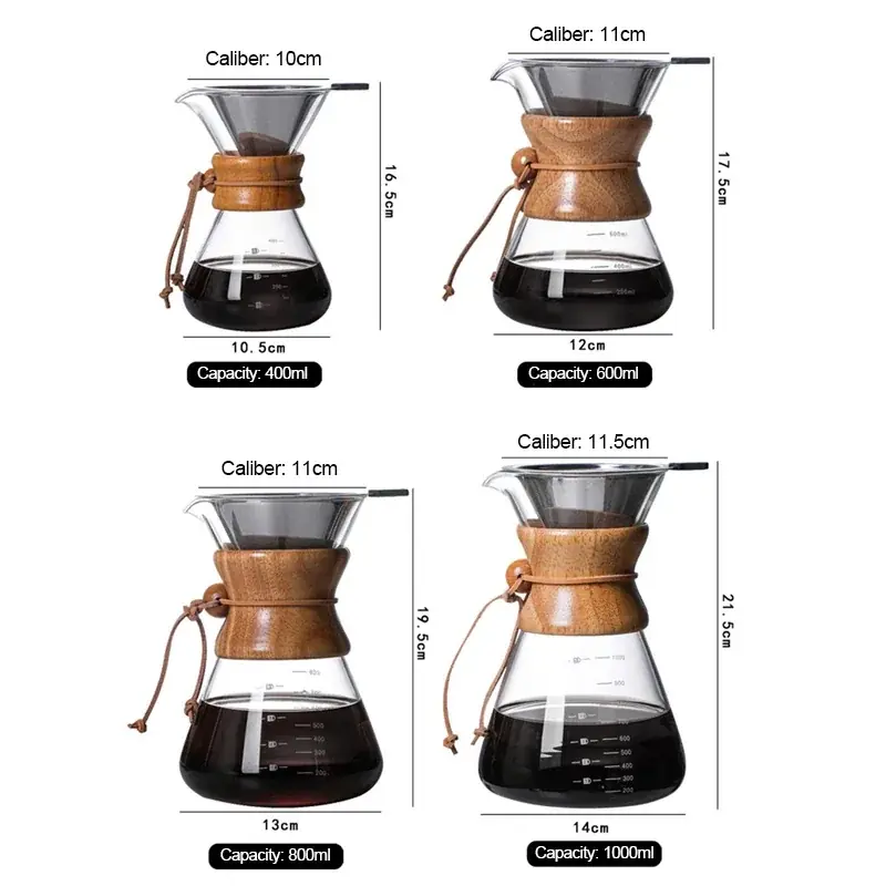 coffee maker kettle clear hand brew coffee pot high borosilicate glass stainless steel filter dripper pour coffee server pot إبريق تحضير قهوة يدوية زجاجي ش...
