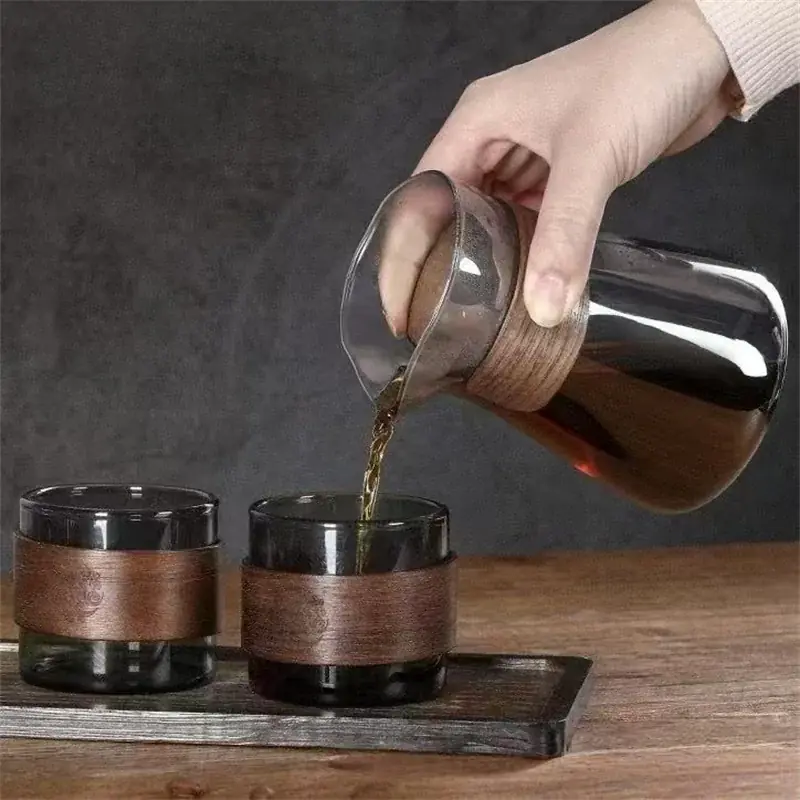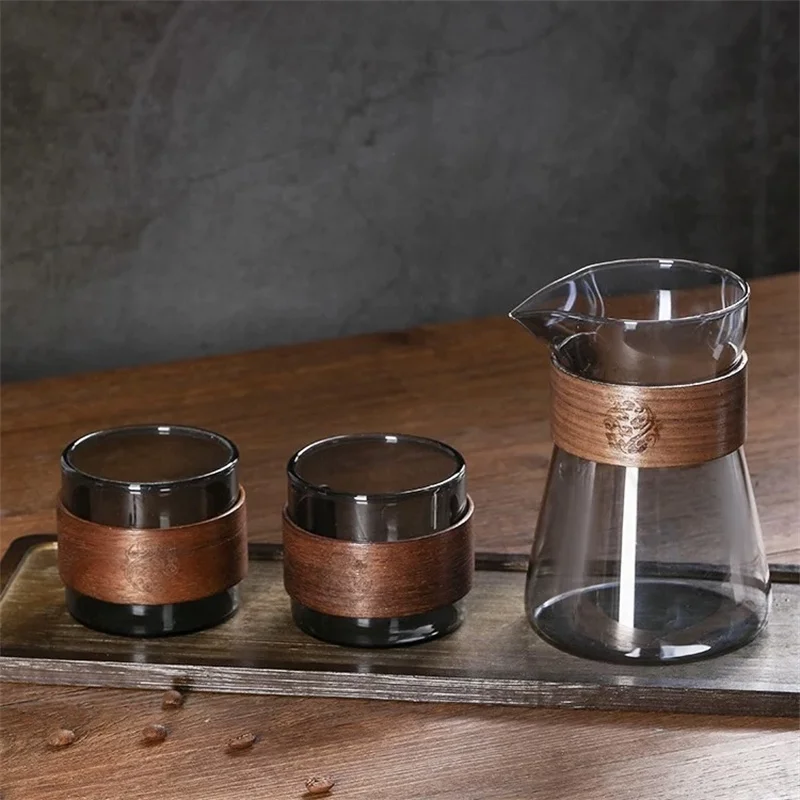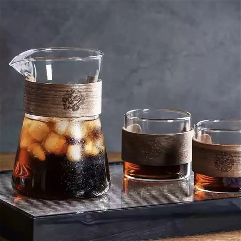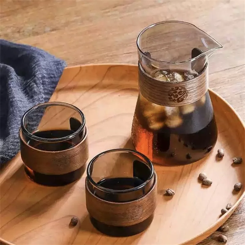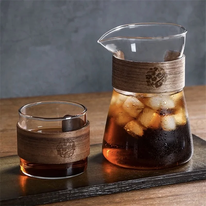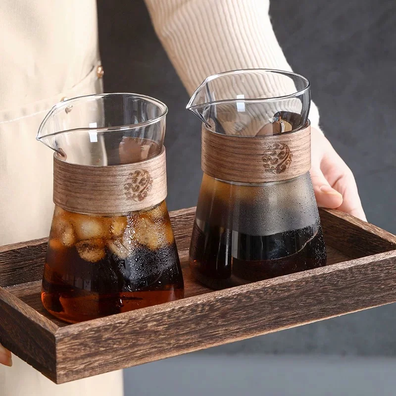 إبريق قهوة زجاجي 500 مل بمقبض خشبي مقاوم للحرارة، مثالي لتحضير القهوة يدويًا ومشاركة القهوة الباردة أو الساخنة، تصميم عملي وأنيق لمحبي الباريستا المنزلي.