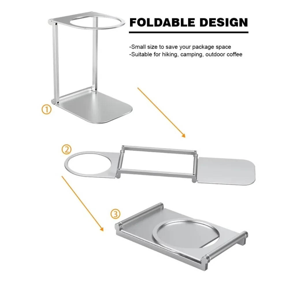 حامل ماكينة قهوة قابل للطي من الألومنيوم، متين ومحمول، مناسب لحمل فلاتر القهوة والإسبرسو، عملي للاستخدام المنزلي أو أثناء السفر.