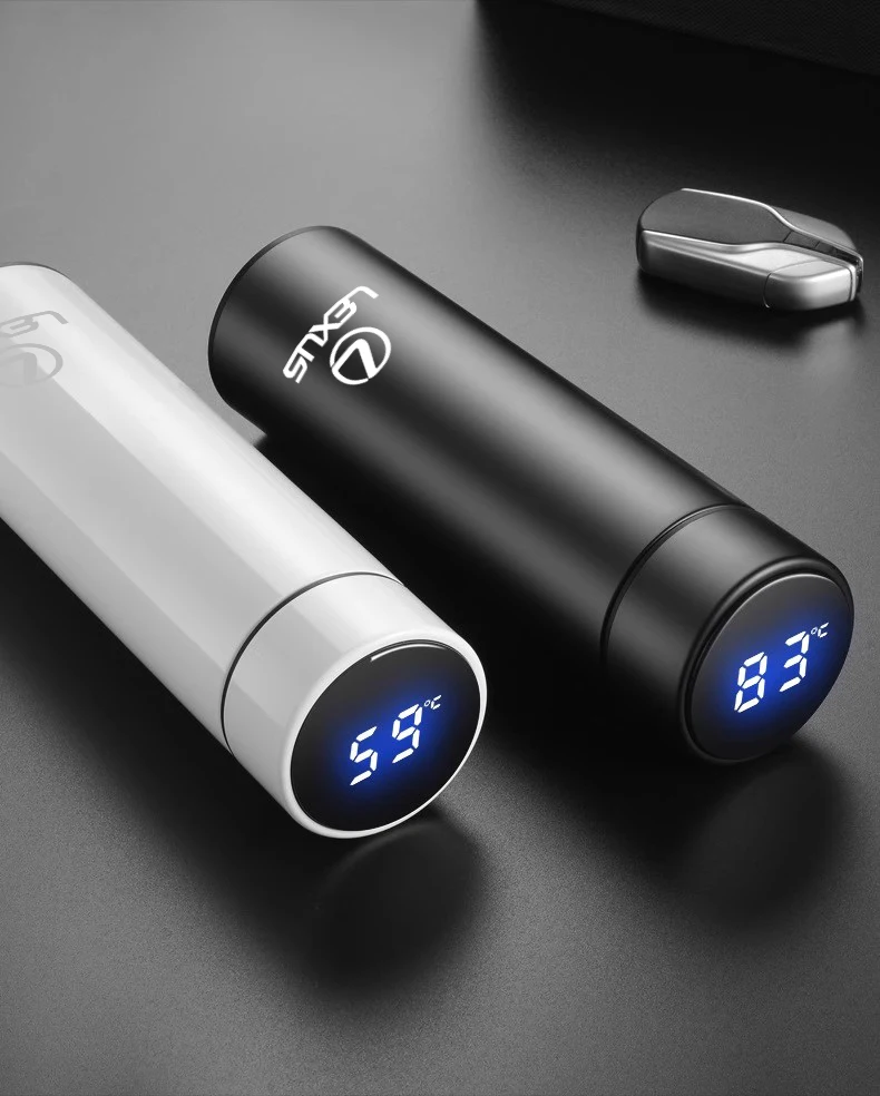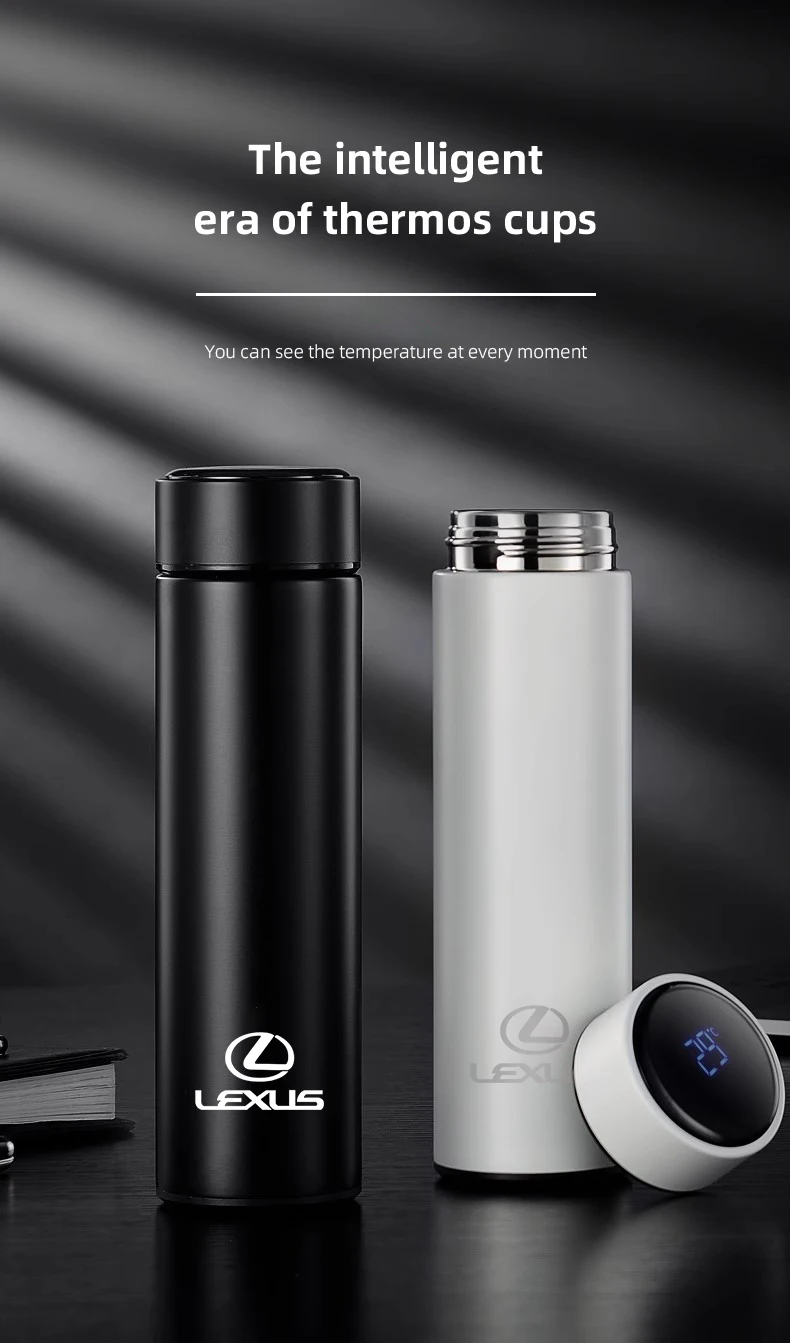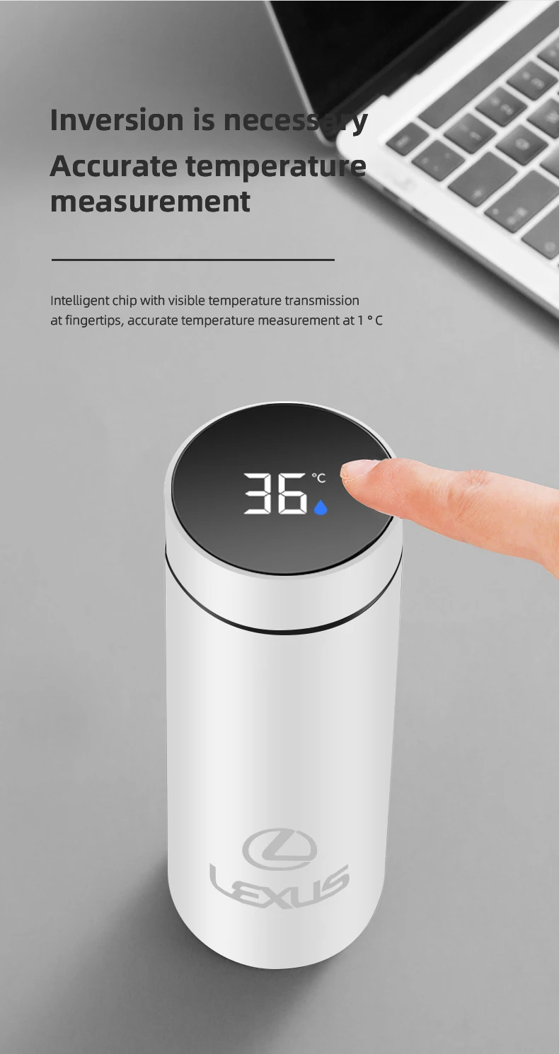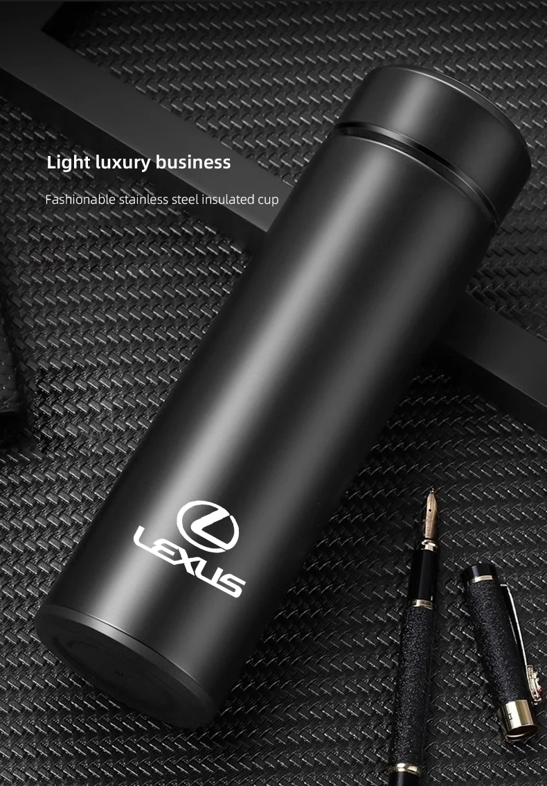 زجاجة ماء ذكية محمولة 500 مل للسيارة، تحافظ على حرارة أو برودة المشروبات، متوافقة مع سيارات لكزس GS، NX، RX، GX460، F-Sport، RX450h، IS350، IS200، UX250h، عملي للسفر والمشاوير اليومية.