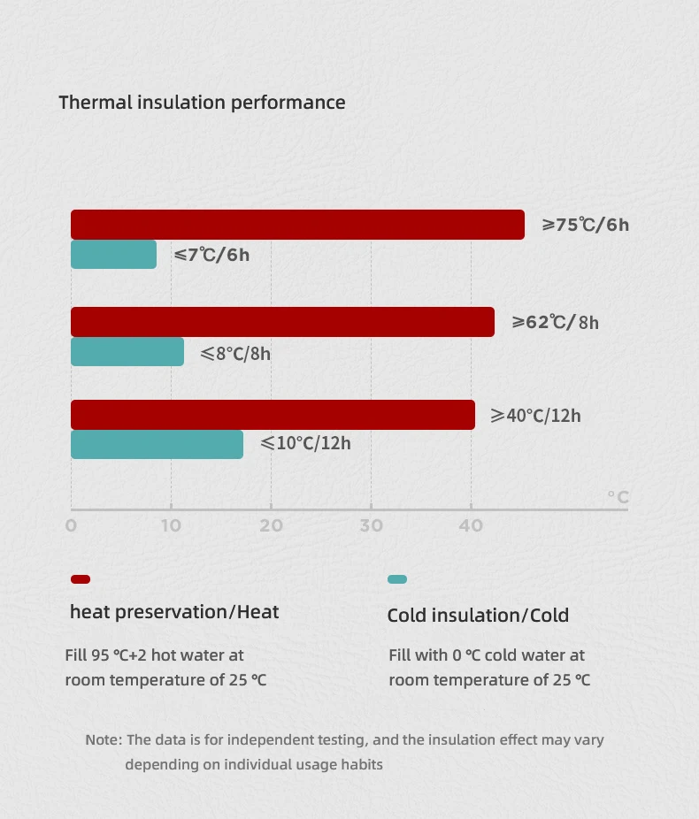 عزل حراري متطور: يحافظ على حرارة المشروبات الساخنة وبرودة المشروبات الباردة لفترة طويلة.