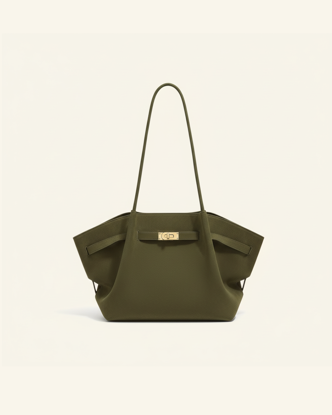 شنطة توت كبيرة كلاسيكية – أنيقة وعملية شنطة كتف وتوت جلد بلون أخضر زي...