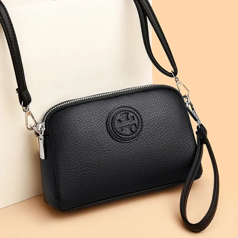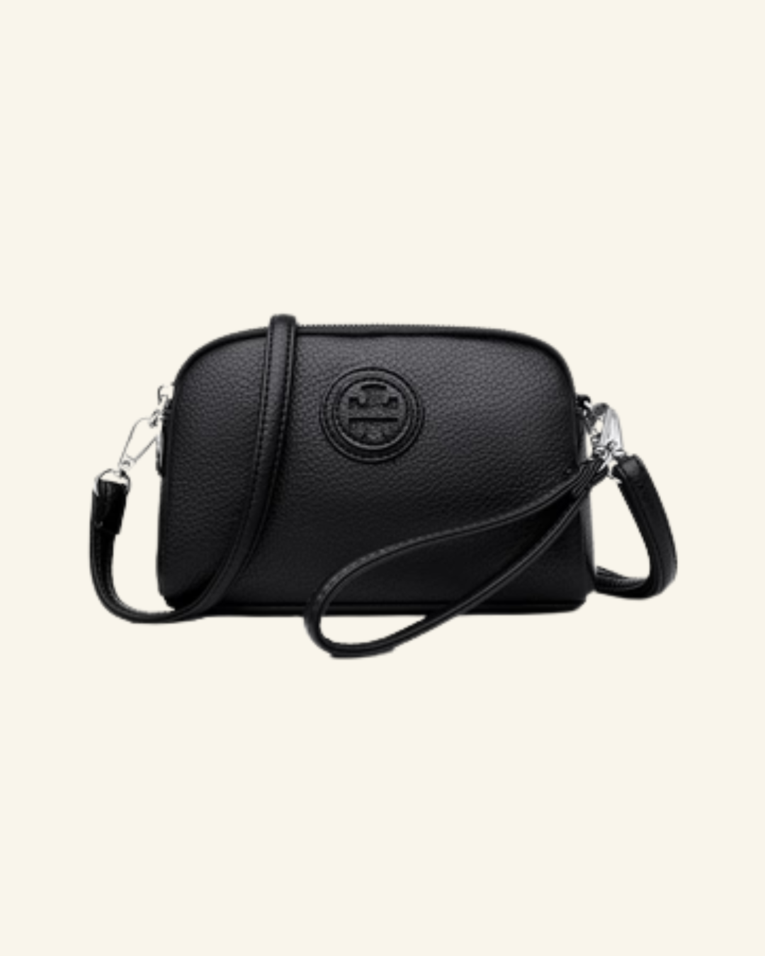 شنطة كتف كروس جلد أسود من سرح – تصميم أنيق، عملي ومثالي لكل يوم.