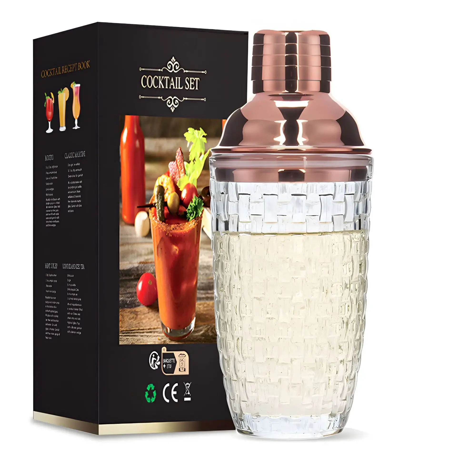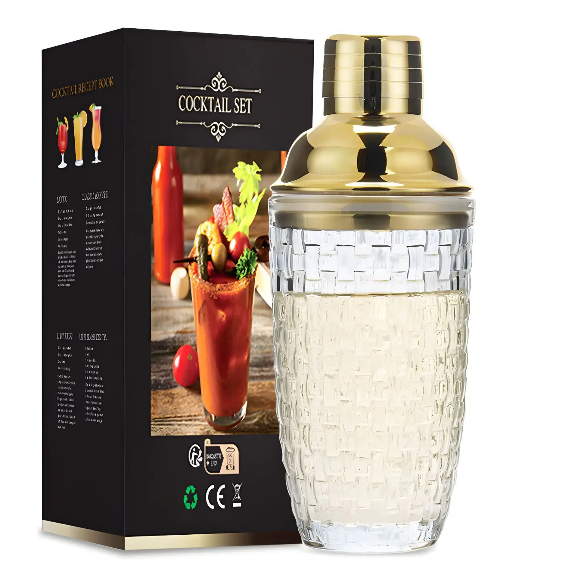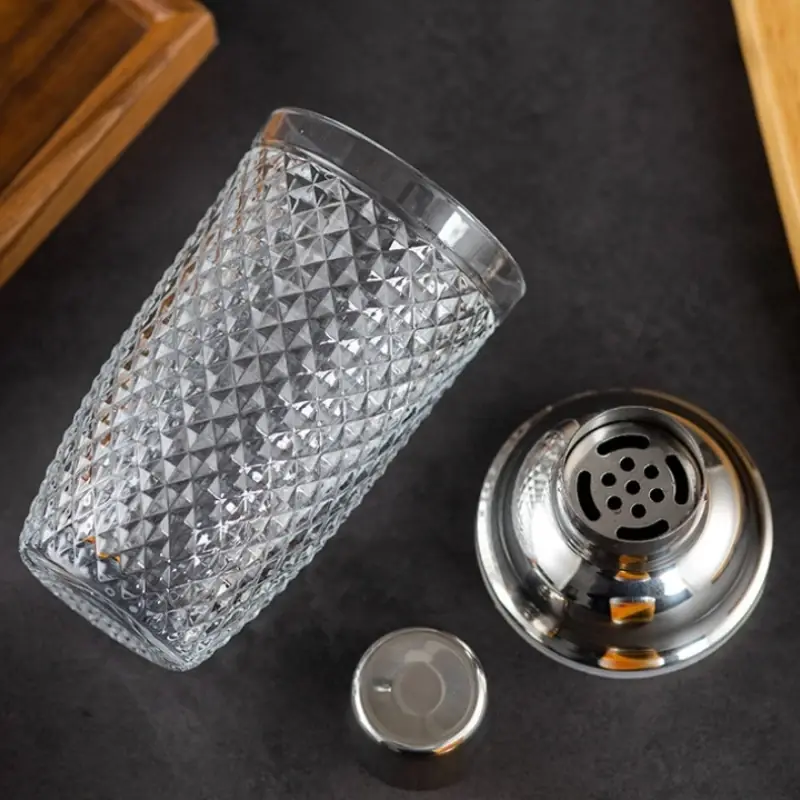 خلاط كوكتيل زجاجي Crystal بسعة 17 أونصة، مزود بغطاء معدني وفلتر مانع للتسرب، مثالي لتحضير المارتيني والمشروبات المختلطة في المنزل.