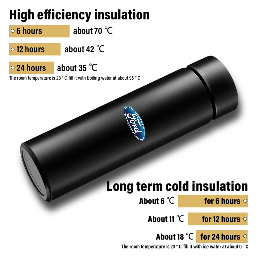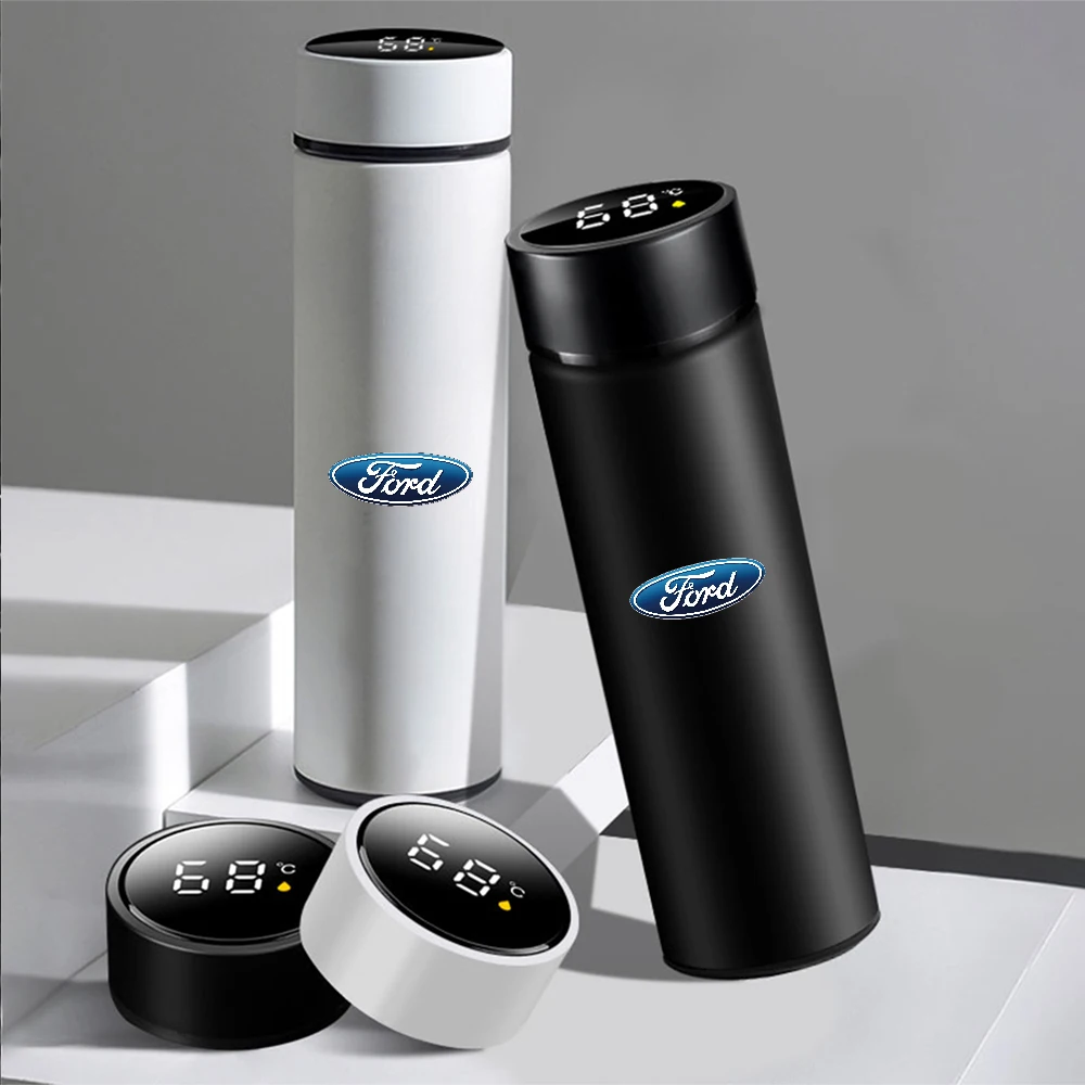 كوب ذكي حراري من الفولاذ مع شاشة لمس، متوافق مع سيارات فورد Ranger، Focus، Kuga، Mustang، S-MAX، Transit، Mondeo، Fusion، Fiesta، يحافظ على حرارة المشروبات أثناء القيادة.
