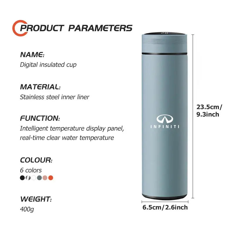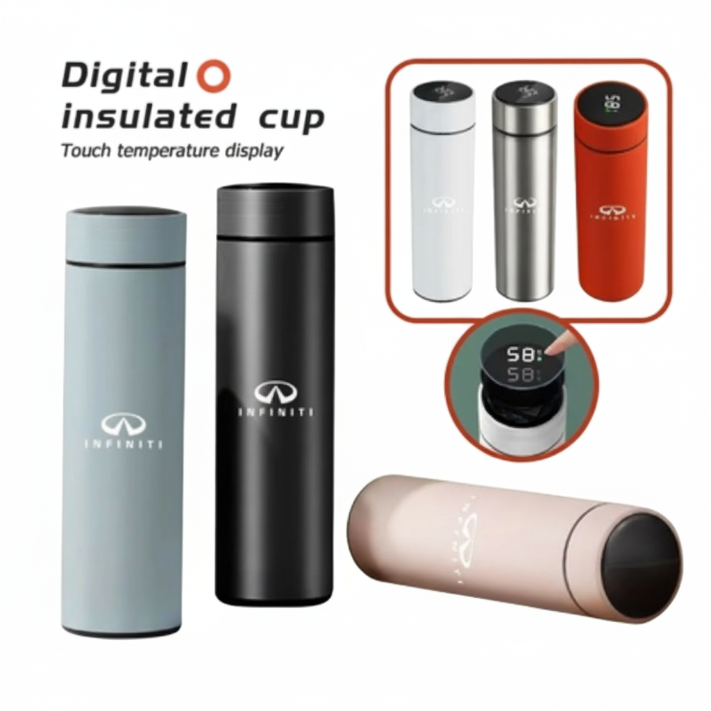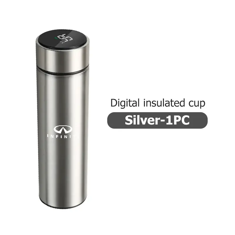 كوب ذكي للسيارة مع عرض درجة الحرارة، مصنوع من الفولاذ الحراري، يحافظ على حرارة المشروبات ويضيف لمسة أنيقة لإكسسوارات سيارات Infiniti.