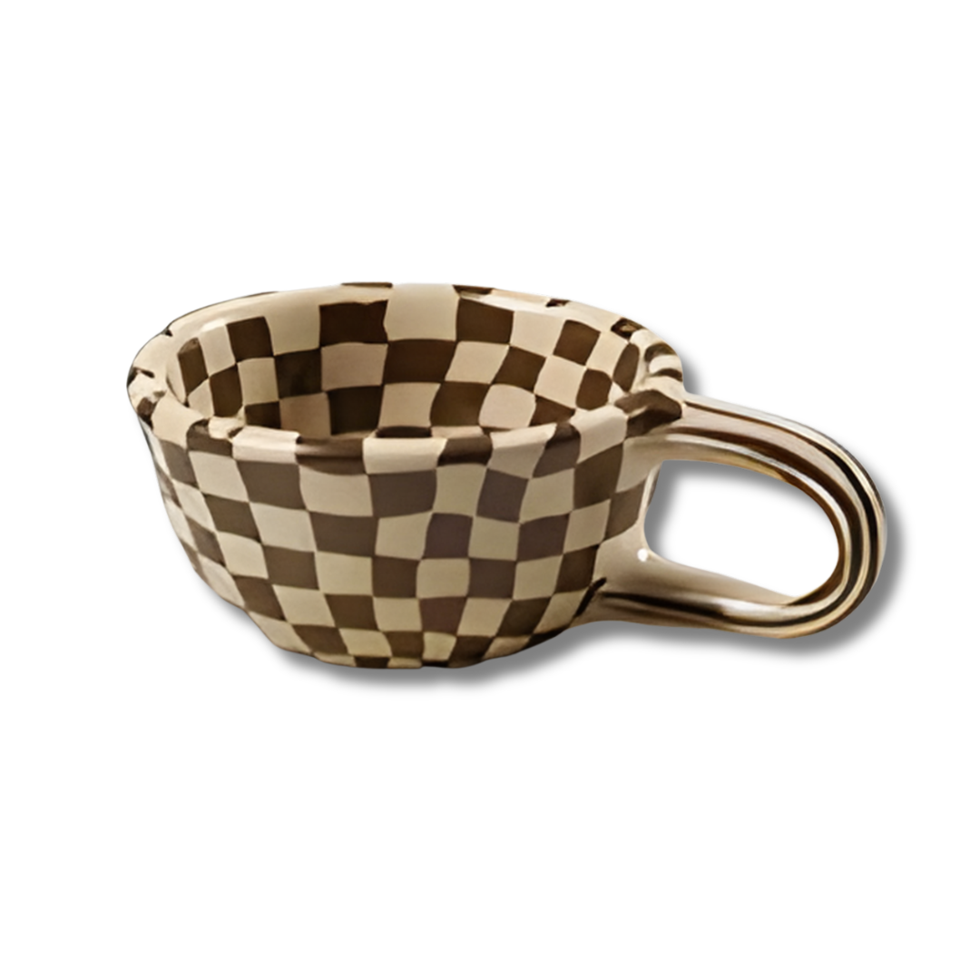 كوب سيراميك فريد بتصميم رقعة الشطرنج، مناسب للقهوة، الحليب والشاي، خيار عملي وأنيق للهدايا ولتزيين المنزل.