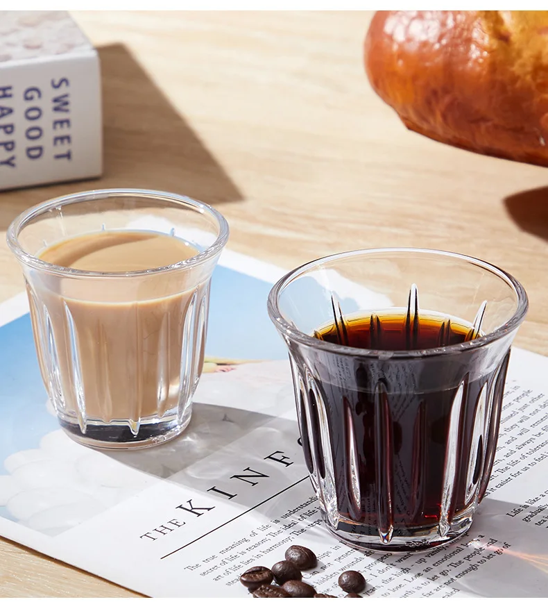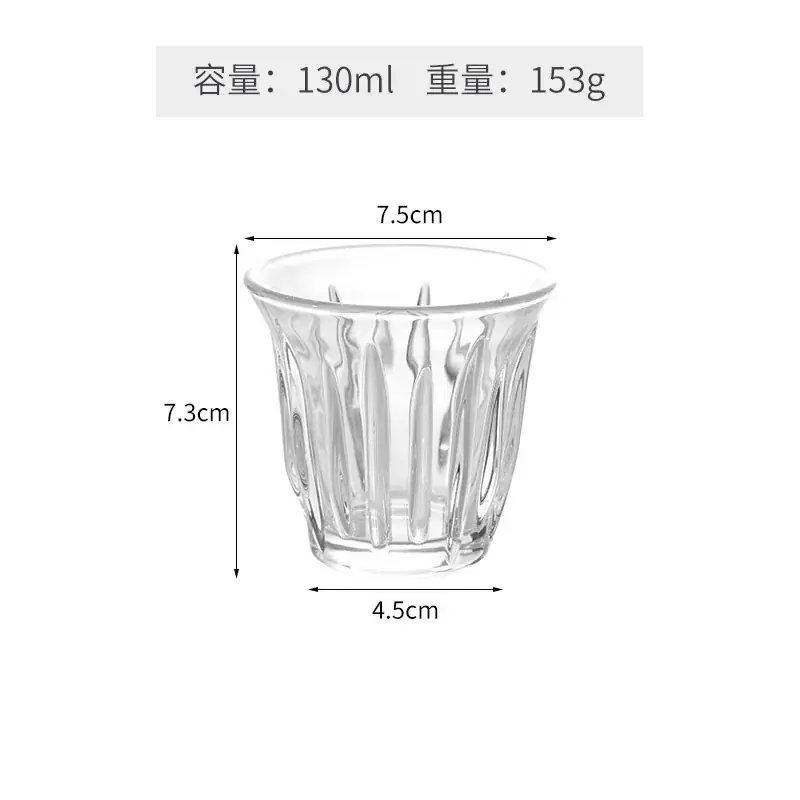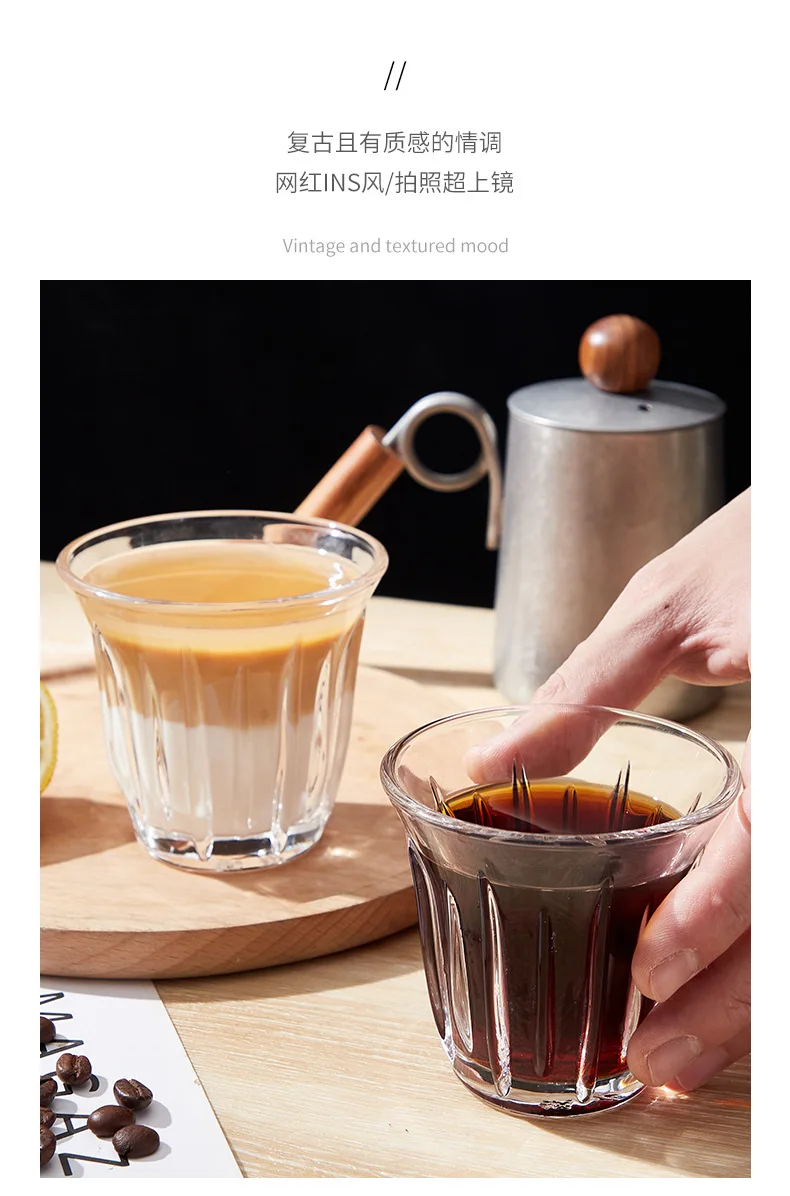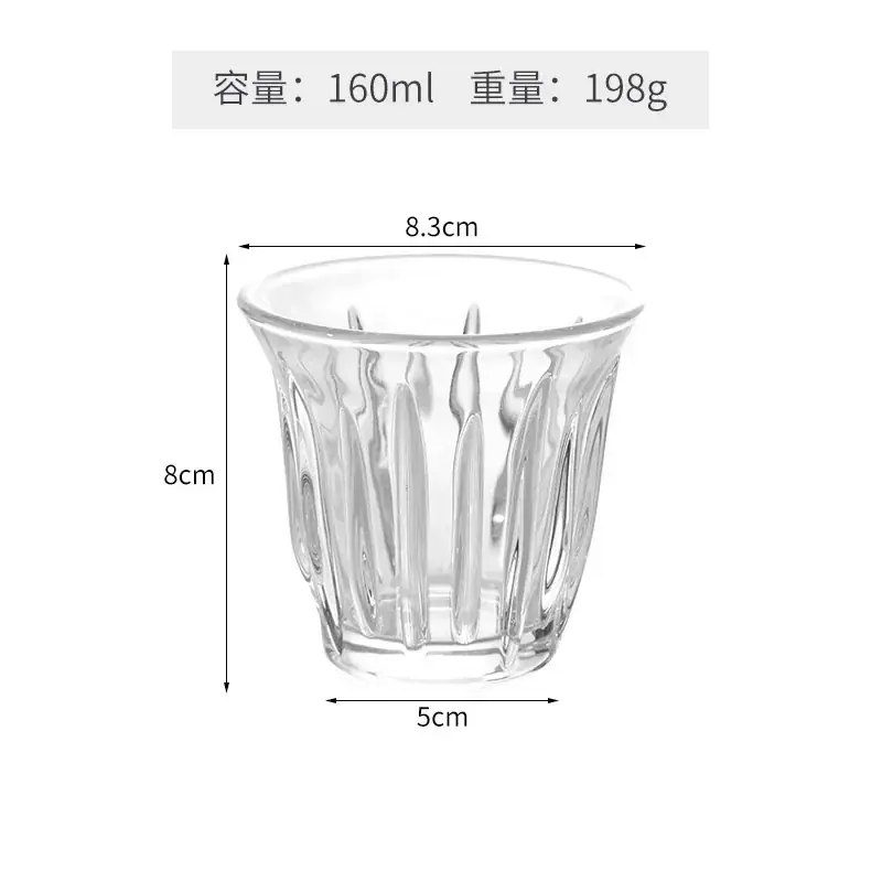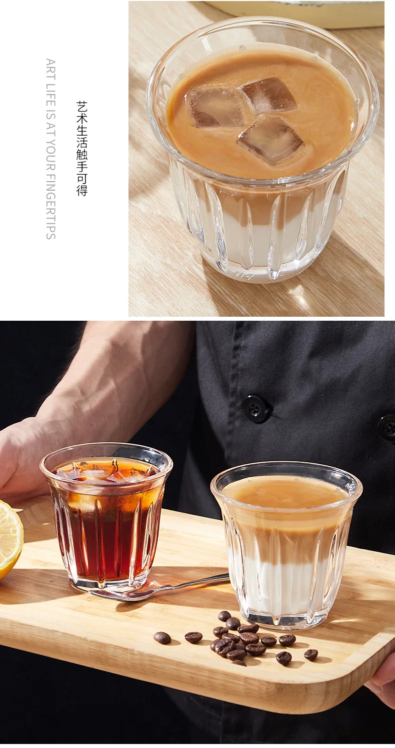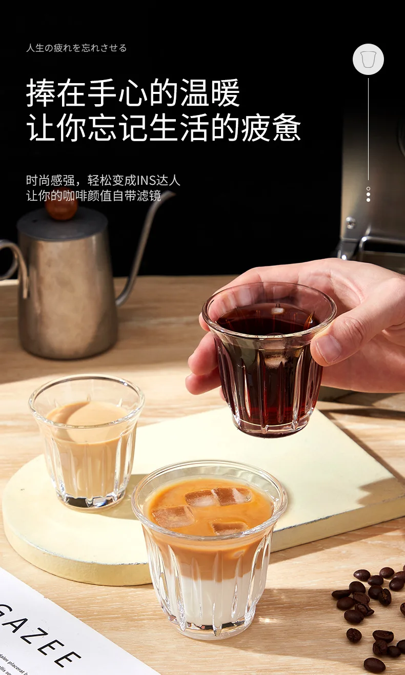 كوب قهوة زجاجي مخطط بسعة 90–200مل، مقاوم للحرارة ومضاد للحروق، مثالي للقهوة، اللاتيه، الكابتشينو، الشاي والعصائر.