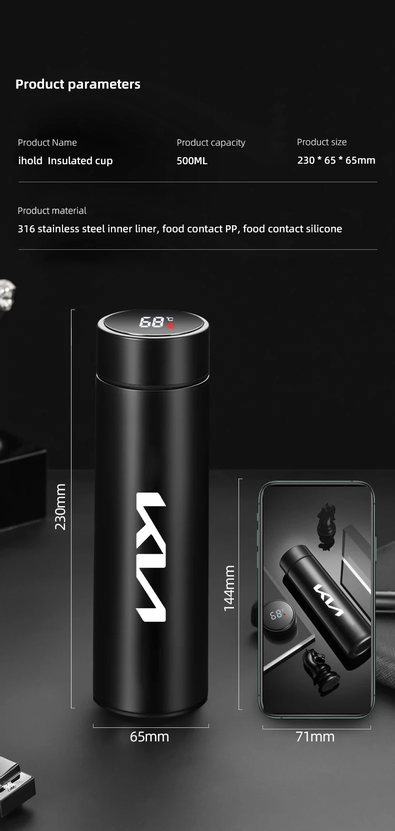 كوب ماء حراري ذكي 500مل محمول للسيارة | إكسسوار سيارات لكيا – متجر سرح كوب ماء حراري ذكي 500مل محمول ...