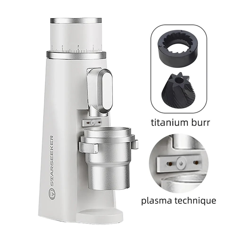 مطحنة قهوة كهربائية STARSEEKER EDGE بمطحنة Burr تيتانيوم 48مل، ضبط طحن بدون خطوات، مثالية للإسبريسو والقهوة المختصة باللون الأسود.