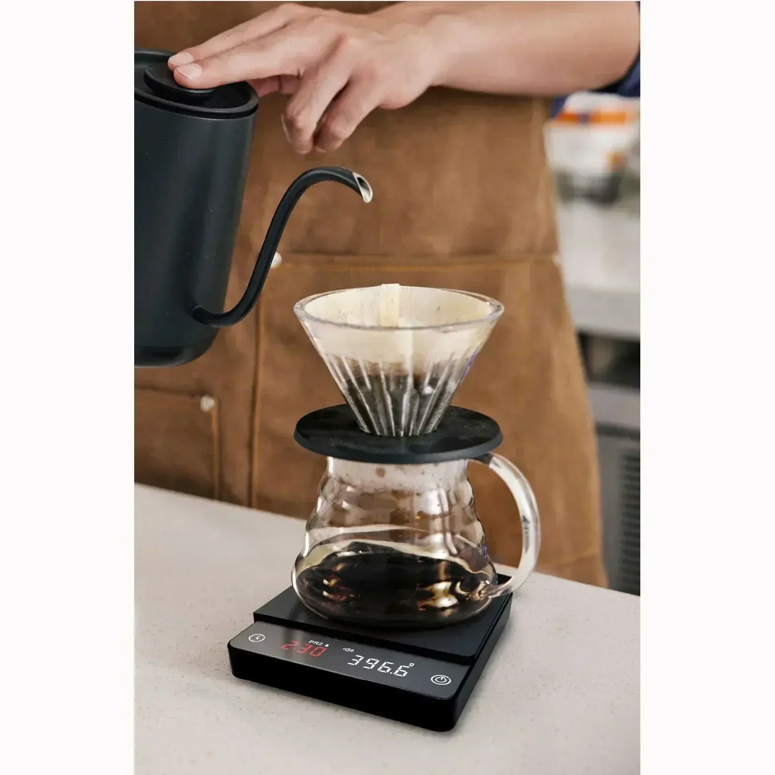 دقة عالية 0.1 جم: لضبط وزن القهوة والماء بدقة مثالية.
