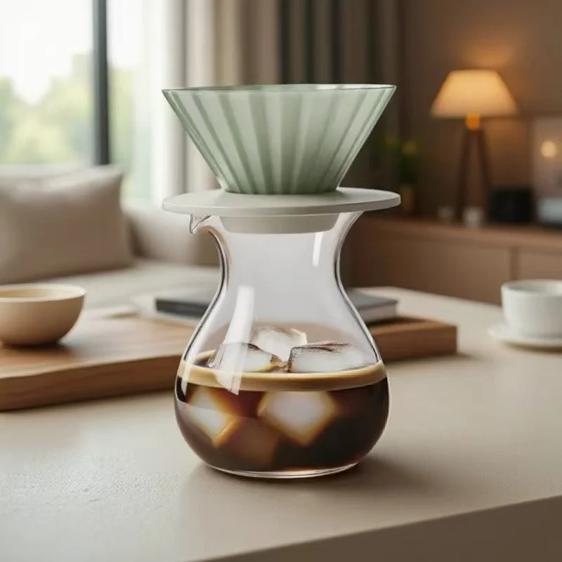 إبريق قهوة زجاجي يدوي 600مل مع كوب 210مل لعطر القهوة، مثالي لتحضير القهوة الباردة أو الساخنة، مناسب للاستخدام المنزلي والمشاركة مع الأصدقاء.