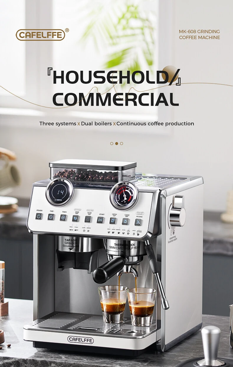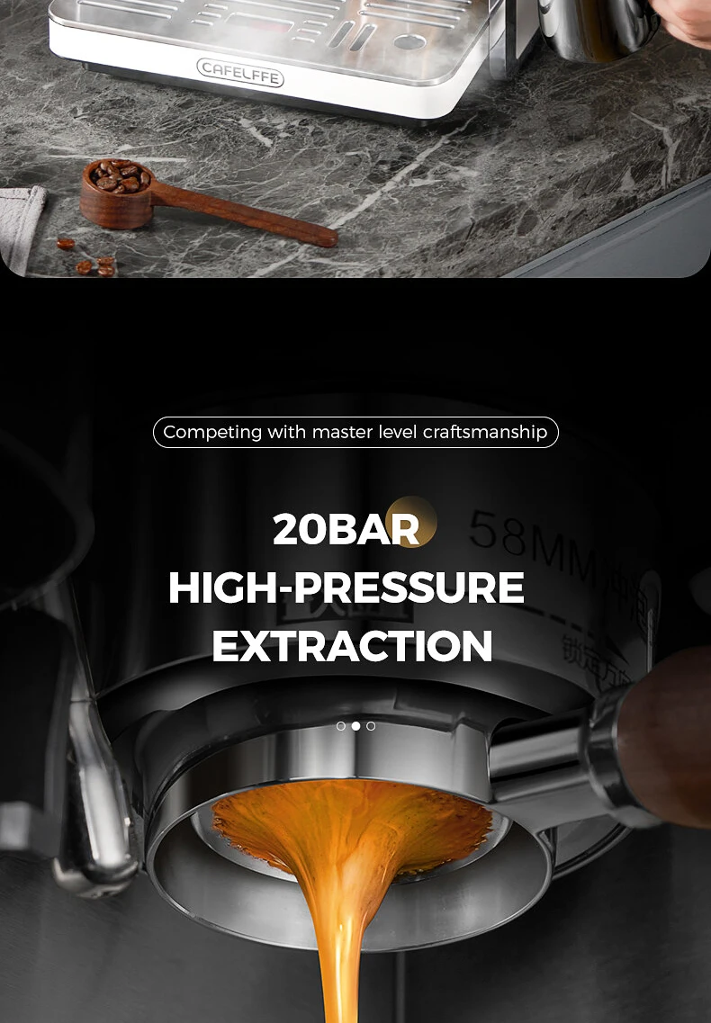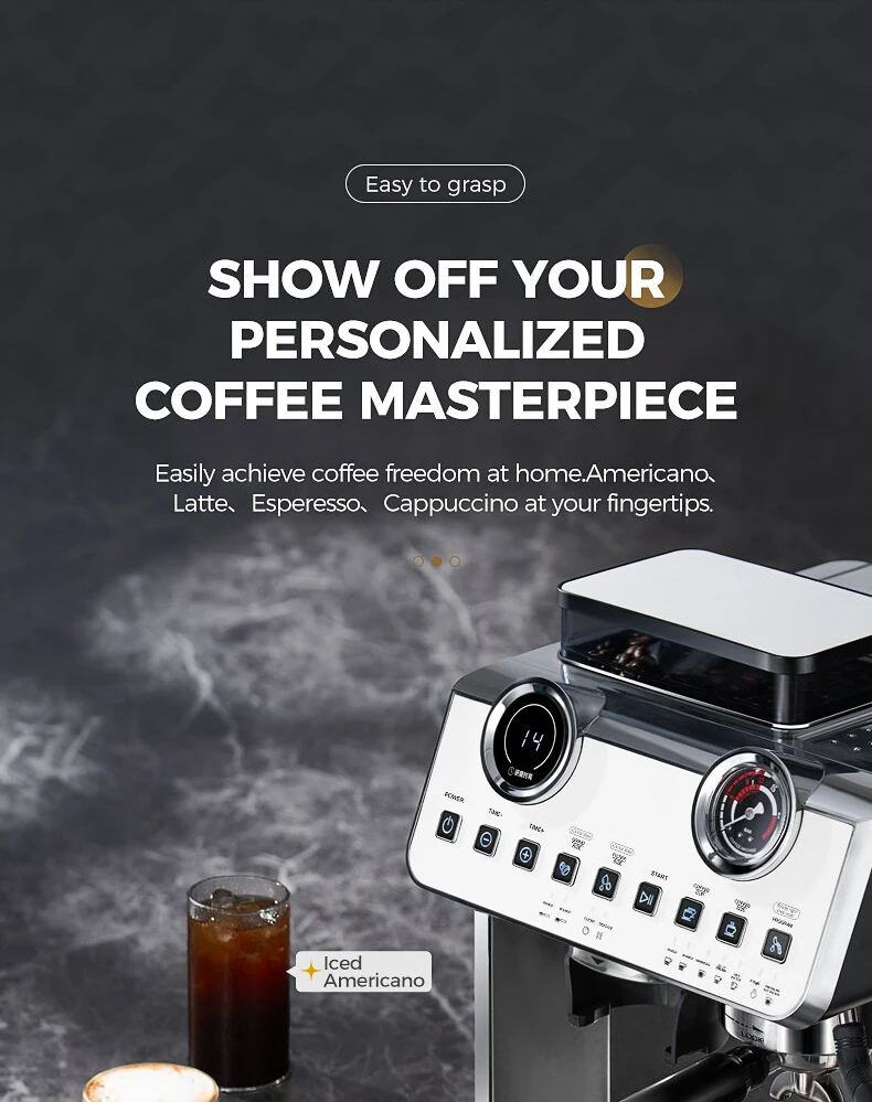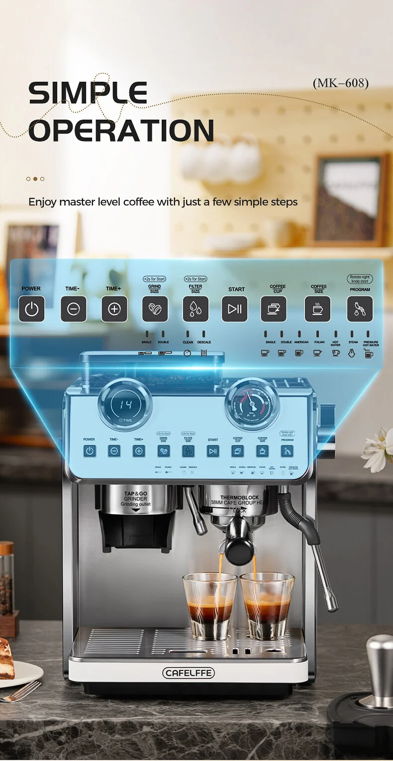 استمتع بتحضير إسبرسو احترافي مع Cafelffe Barista Pro من متجر سرح. ماكينة بضغط 20 بار، نظام المرجل المزدوج، إعداد قهوة من الحبوب مباشرة، مع خاصية التنظيف الذاتي وتحضير أمريكانو بضغطة واحدة.