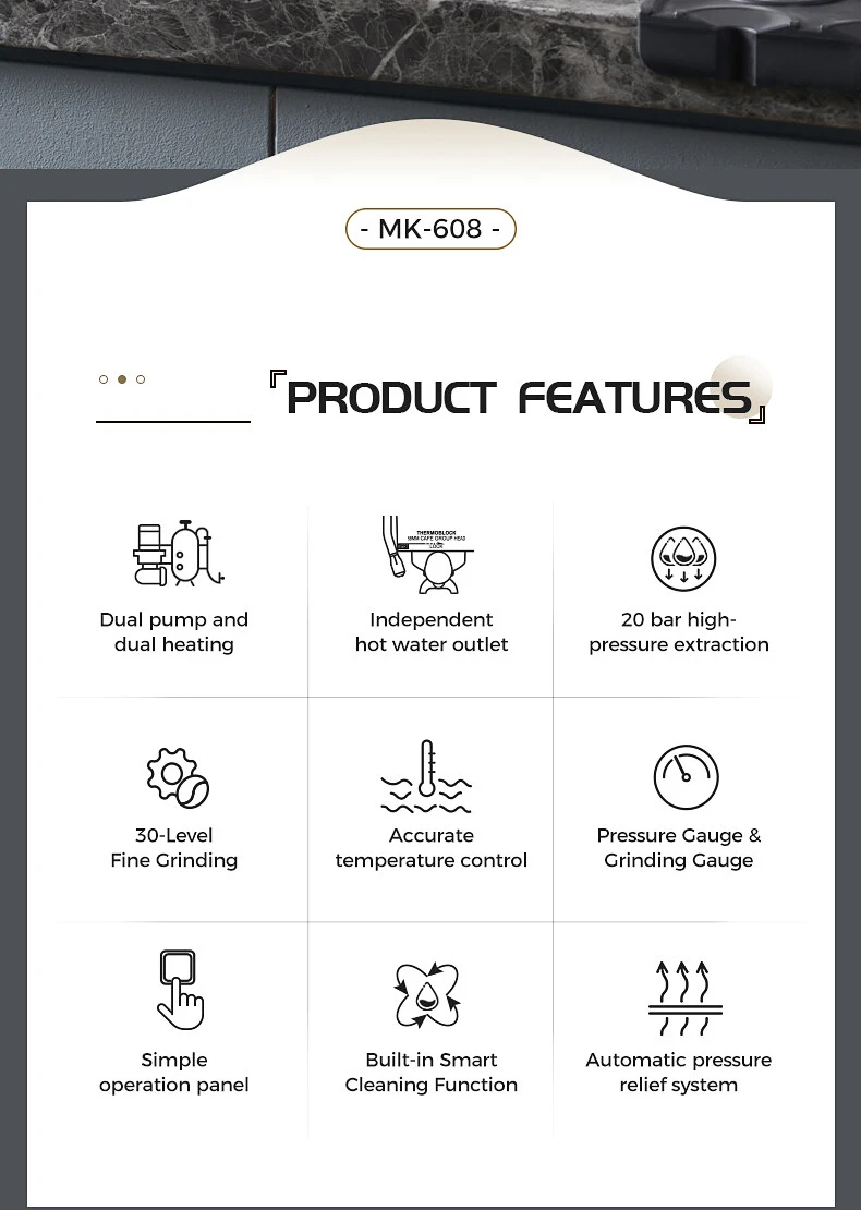 نظام المرجل المزدوج : تحكم مستقل بدرجة حرارة البخار والماء لتحضير إسبرسو وكابتشينو مثالي.