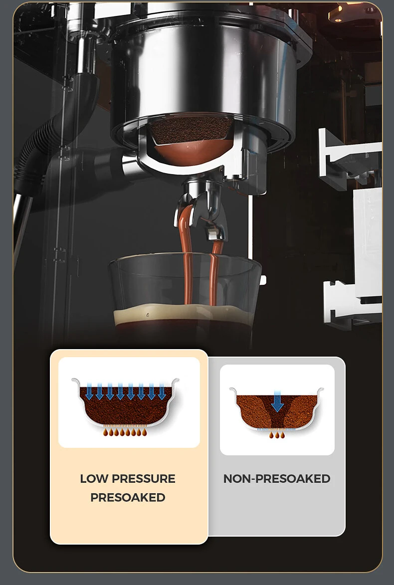 ضغط 20 بار: استخراج نكهات غنية ومتكاملة من الحبوب الطازجة.