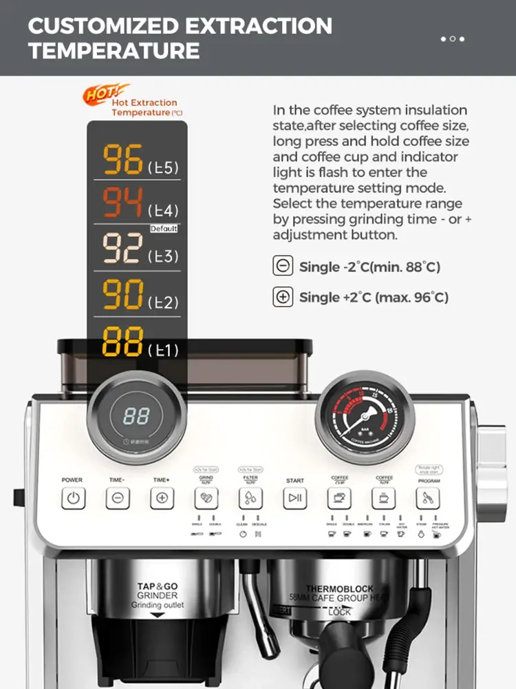نظام المرجل المزدوج : تحكم مستقل بدرجة حرارة البخار والماء لتحضير إسبرسو وكابتشينو مثالي.
