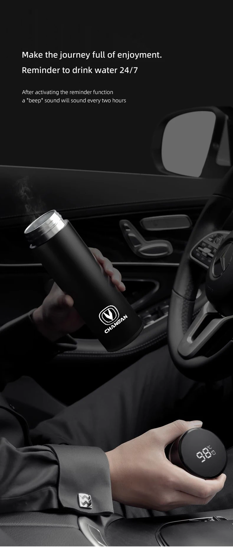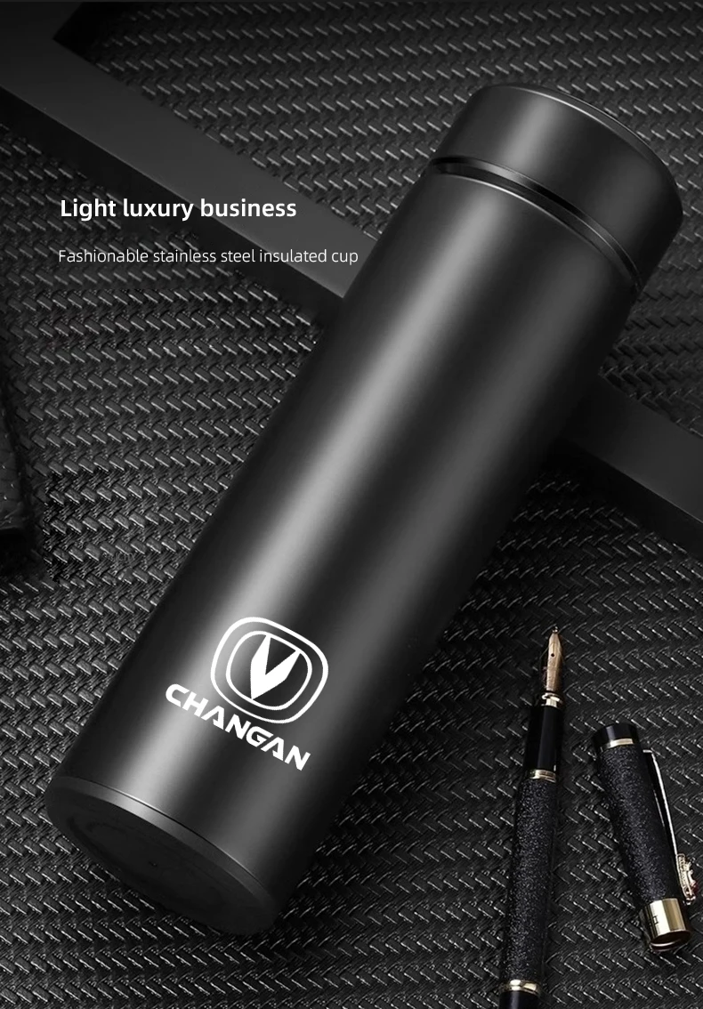 كوب حراري معزول بسعة 500 مل بشعار Changan، مثالي لحفظ القهوة والشاي والماء أثناء القيادة أو السفر، تصميم عملي يناسب سيارات شانجان المختلفة من متجر سرح.