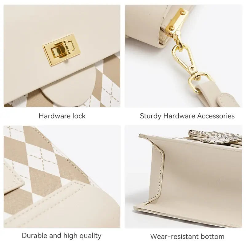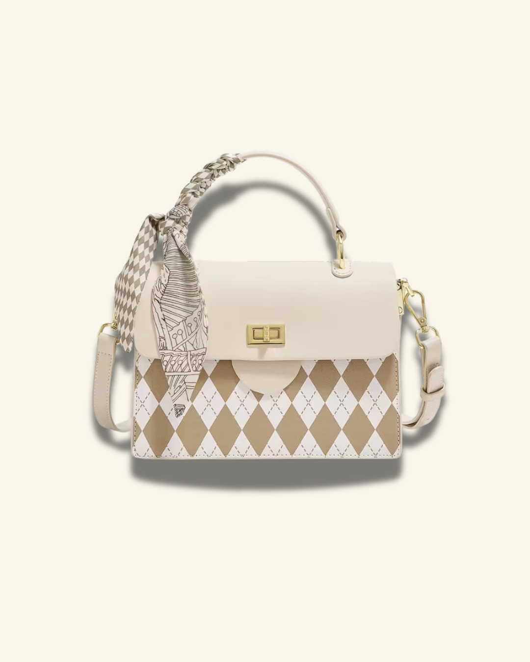 اكتشفي أناقة الموسم مع شنطة كتف نسائية راقية بتصميم هندسي بنقشة الألماسة ولمسات ذهبية فخمة تمنحك مظهرًا عصريًا مميزًا.