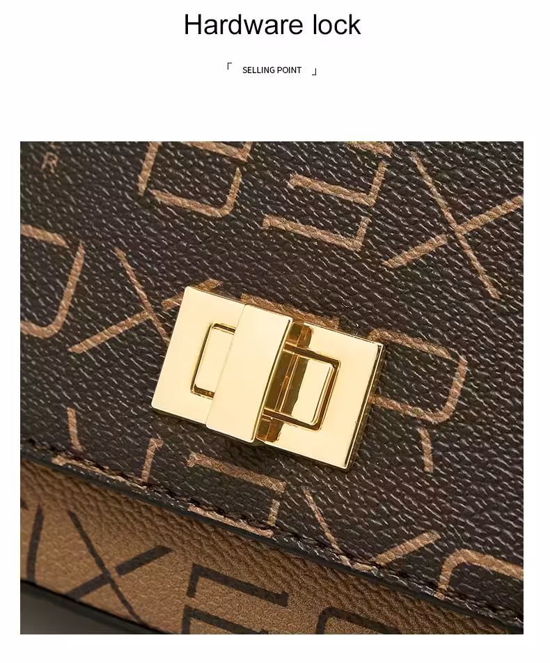 يتميز تصميمها بشكل فلاپ (FLAP) أنيق مع قفل Hasp مزين بديكور معدني فاخر، وسلسلة تضيف لمسة كلاسيكية راقية تناسب مختلف الإطلالات.