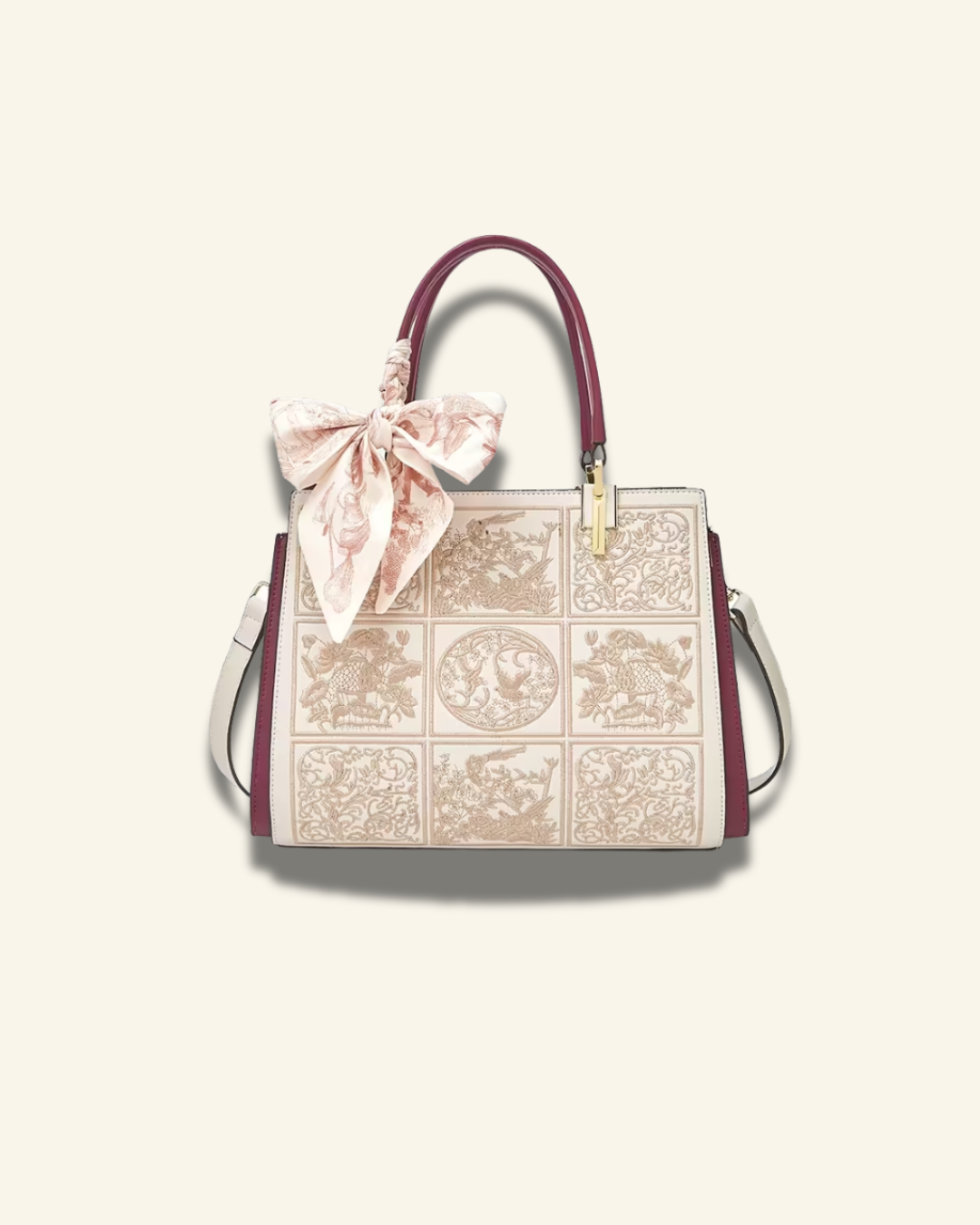 خامات عالية الجودة: جلد فخم مع تفاصيل وشاح حريري